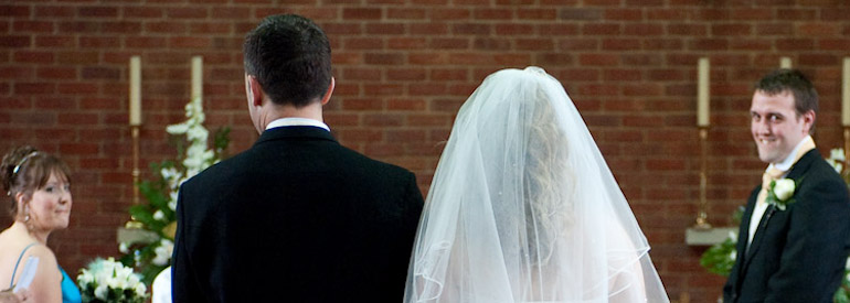 Too many wedding photographers blast away with flash when it's just not necessary. A little bit of care and direction will give perfect lighting; flash is safe, but flat and makes for unattractive highlights on foreheads and cheeks